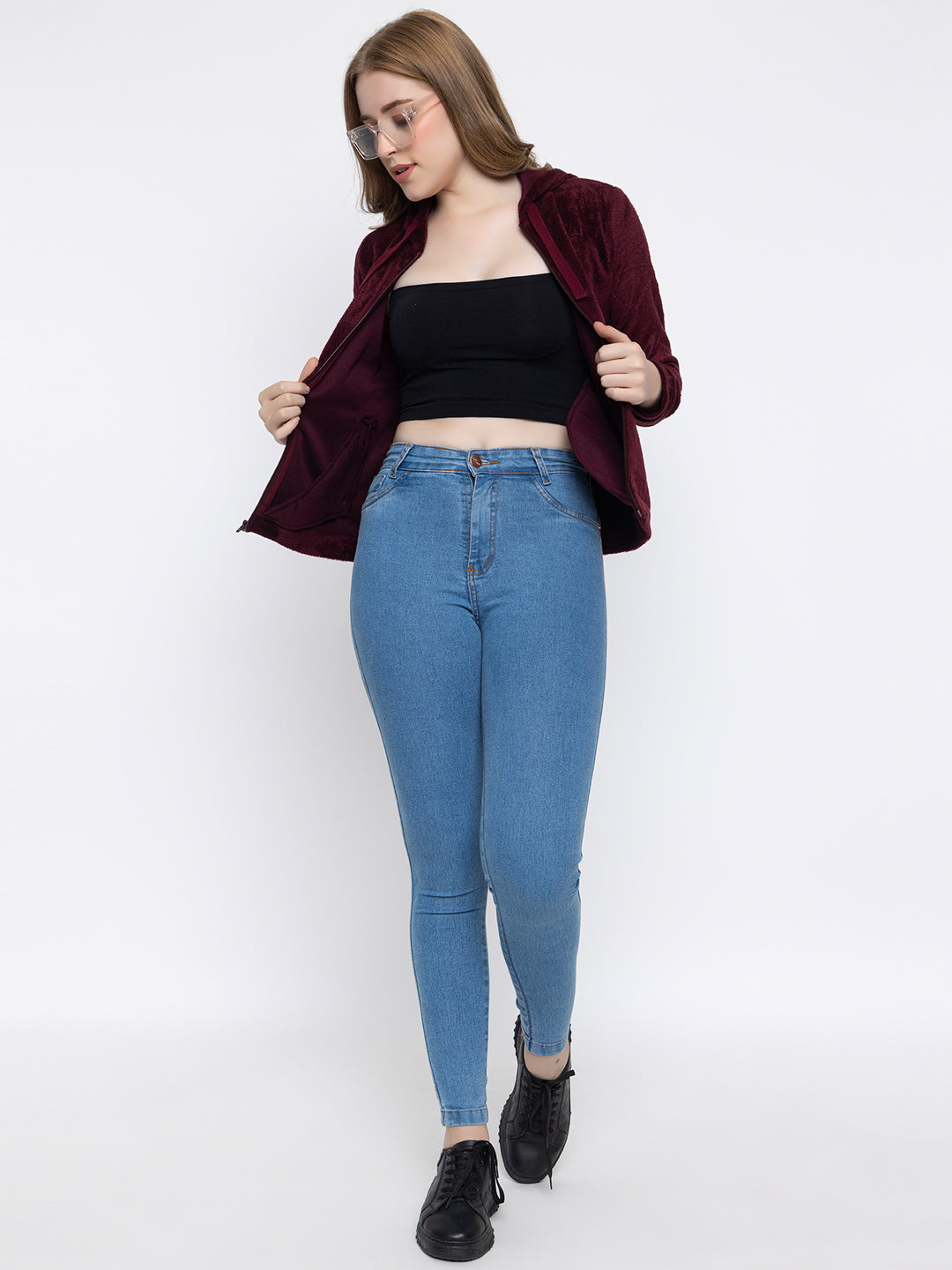 ANGELBELLS Women’s Wine Velvet Hoodie – Soft & Cozy Full-Zip Sweatshirt