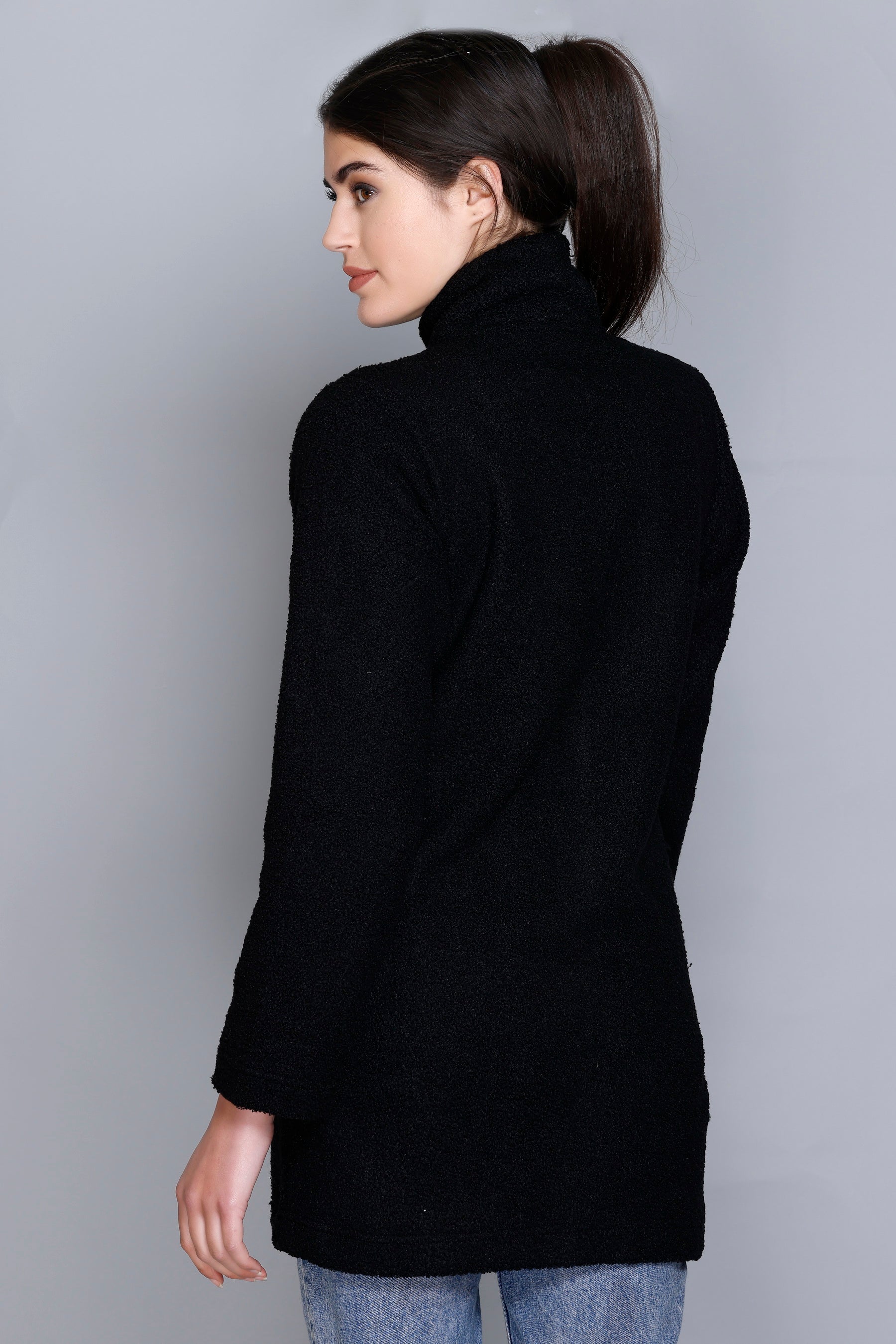 • Minimal, clean look with a high neck to shield the neck from chilly winds.