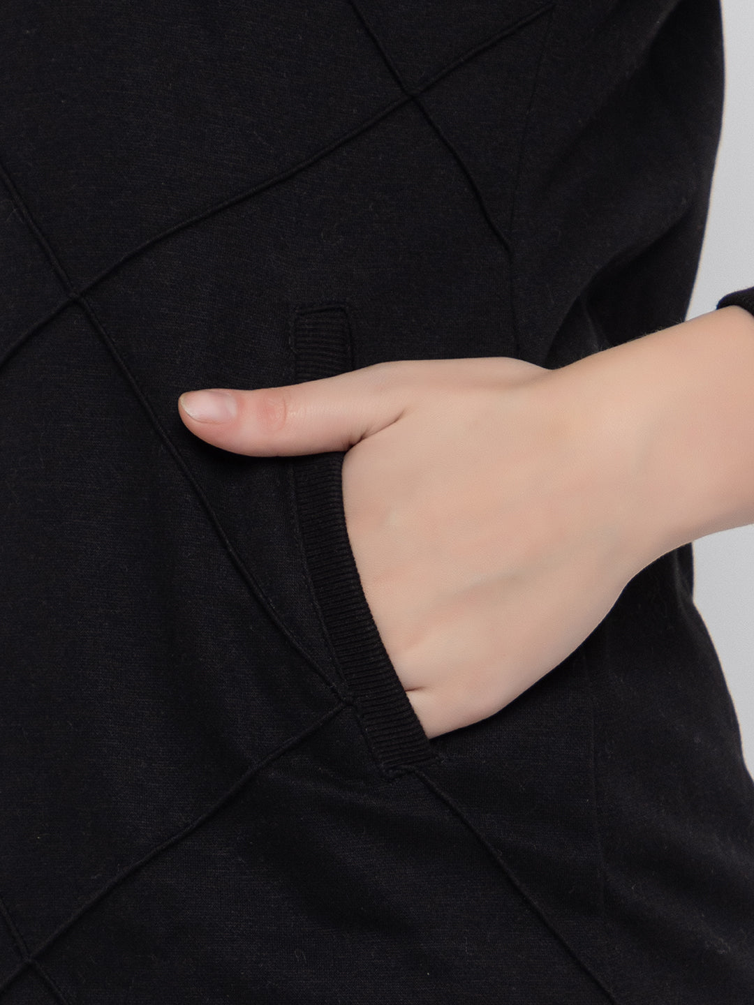 • Cut pockets on both sides to keep hands warm or carry small essentials like a phone or keys.